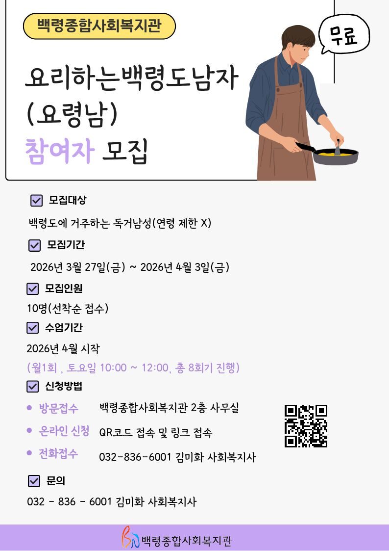2026년 요리하는 백령도 남자(요령남) 프로그램 참여자를 모집합니다.